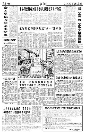 正在四川、甘肃、陕西抗震救灾一线支援重建的解放军和武警部队官兵与灾区群众一起,通过共建联欢的形式庆祝节日。执行奥运安保的解放军和武警部队数万名官兵正日夜坚守在执勤岗位上,官兵们说,一定要以高度的责任心为奥运站好岗,为建军节献上一份厚礼。