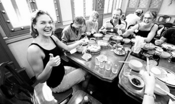 随着奥运会的临近,北京各餐饮门店纷纷推出新品,不仅在口味上作了调整,以适应外国朋友的习惯,还推出了许多特色菜肴,营造出浓厚的迎奥运氛围,北京的“中华老字号”品牌饭店尤其受到顾客青睐。图为北京一家“中华老字号”饭店内,来自荷兰的客人正在用餐,对京味美食赞不绝口。 本报记者 李景录摄