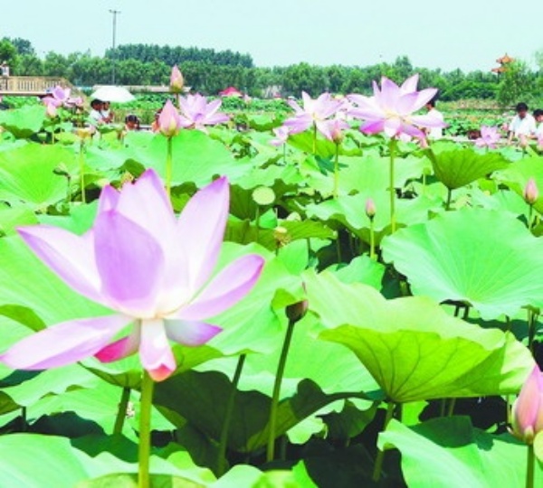 连日来,河北保定白洋淀文化苑景区里游人如织,数百个品种的荷花竞相开放,供游客欣赏。北京奥运会开幕在即,北京周边旅游景区以优质的服务欢迎八方游客的到来。 本报记者 李景录摄