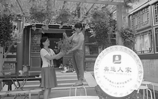 这个四合院已经有100多年的历史。为了迎接奥运,朱家专门辟出来两间房子用于接待游客。朱宝华说,为了方便奥运期间对外交流和服务游客,他除了让懂英语的侄女赵东彦过来帮忙外,还请了2名利用暑期作兼职的懂外语的学生。