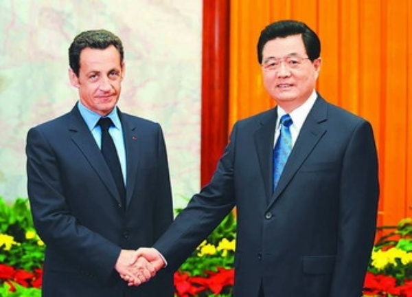 胡锦涛欢迎萨科齐总统以欧盟轮值主席和法国总统的双重身份来华出席北京奥运会开幕式。胡锦涛表示,萨科齐总统以实际行动表明支持北京奥运会的立场,这有利于增进中法两国人民的友好感情,也有利于两国关系进一步改善。中方对此积极评价。