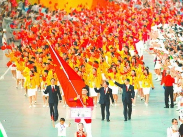 8月8日,中国代表团入场。当日,第29届夏季奥林匹克运动会在中国国家体育场隆重开幕。 新华社记者 刘大伟摄