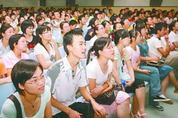 陕西师范大学学生集体观看北京奥运会开幕式。 白 强摄