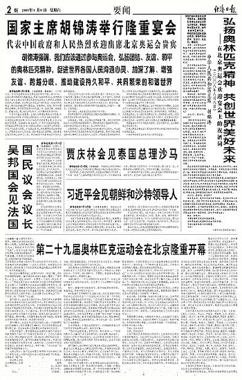 第二十九届奥林匹克运动会在北京隆重开幕