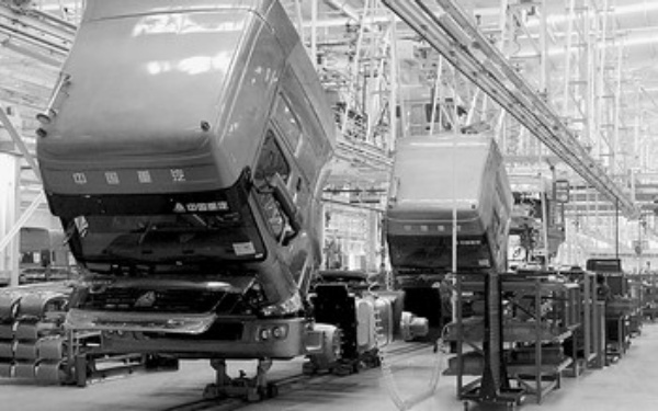中国重汽改革生产组织方式。率先在我国重型汽车行业实行了“订单生产”模式,建立起“面向市场、订单生产”的生产经营管理机制,将经营管理流程由原来的“开发————生产————销售”转变为“市场————开发————生产————销售”,形成了前方销售公司开拓市场、后方根据订单组织生产的运营体系。适应不同用户的不同需求,从“以生产为中心”向“以顾客为中心”转变,再造生产流程,由过去的一条生产线只能生产一种产品的传统生产方式,改变为在一条生产线上生产不同型号产品的“柔性”生产模式。通过采用比价招标采购、由供应商在生产现场租赁仓库供货等方式,改进零部件供应管理方式,缩短生产所需零部件的物流距离,保证按生产需要及时提供配件及原材料,实现了生产原材料的“零库存”,订单生产、订单配送成为企业的基本生产方式。