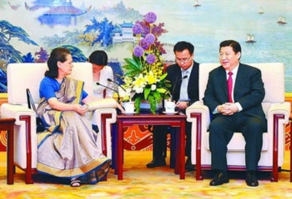 | 8月7日,国家副主席习近平在人民大会堂会见前来出席北京奥运会开幕式的印度国大党主席索尼娅·甘地。