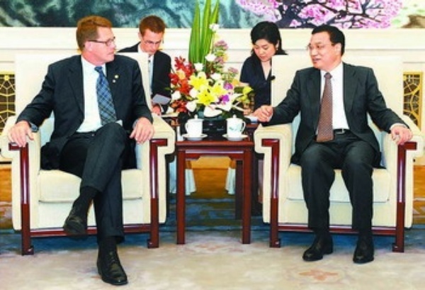 | 8月9日,国务院副总理李克强在人民大会堂会见前来出席北京奥运会开幕式的芬兰总理万哈宁。