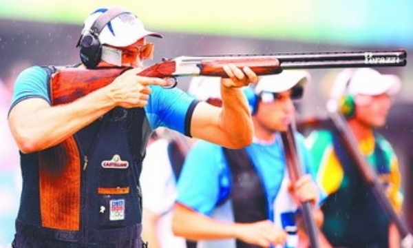 | 8月10日举行的北京奥运会射击男子飞碟多向决赛中,捷克选手科斯特莱茨基(左一)夺冠。新华社记者 徐家军摄 |