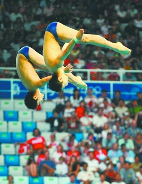 11日,中国体育健儿再获3金1银2铜,以9金3银2铜的成绩继续领跑北京奥运会奖牌榜。在女子58公斤级举重比赛中,陈艳青两次刷新挺举和总成绩奥运会纪录,以244公斤的总成绩获得冠军。张湘祥以319公斤的总成绩夺得男子举重62公斤级金牌。林跃和火亮以468.18分的成绩获得男子双人10米跳台跳水金牌。这是8月11日,林跃/火亮组合在男子双人10米跳台跳水决赛中。 本