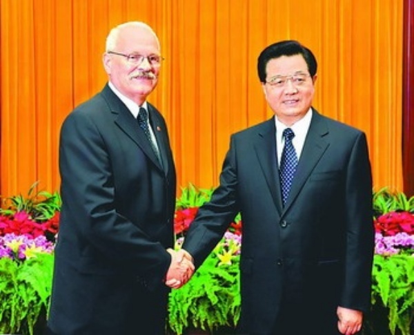 8月11日,国家主席胡锦涛在人民大会堂会见来华出席北京奥运会开幕式及相关活动的斯洛伐克总统加什帕罗维奇。 新华社记者 樊如钧摄
