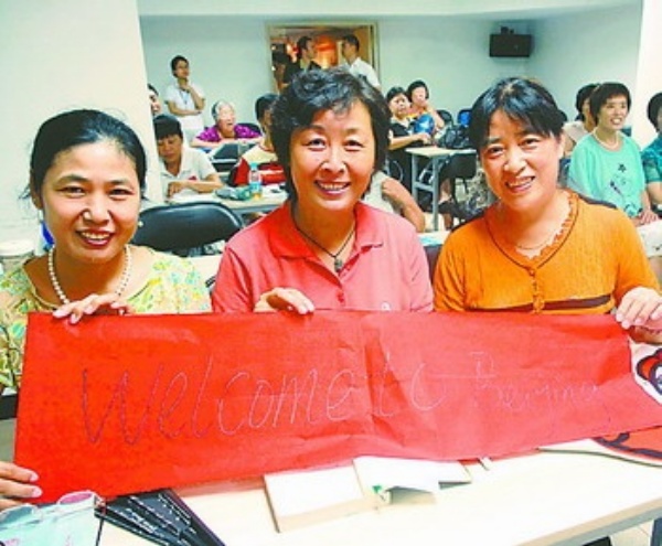 北京奥运会的举办,激发了北京市民学外语的热情。图为北京市金鱼池中区的社区居民在外语课堂上学习英语。 本报记者 赵 晶摄