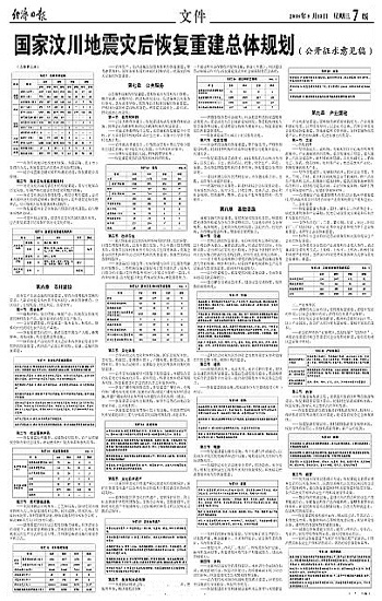 国家汶川地震灾后恢复重建总体规划