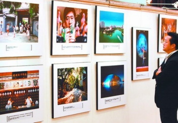 中国驻日本大使馆举办“北京欢迎你”图片展,展览分为“古都风貌”、“场馆建设”、“喜迎奥运”等主题,全面展示奥运北京的风采。图为观众在日本东京的中国大使馆内参观“北京欢迎你”图片展。 新华社发