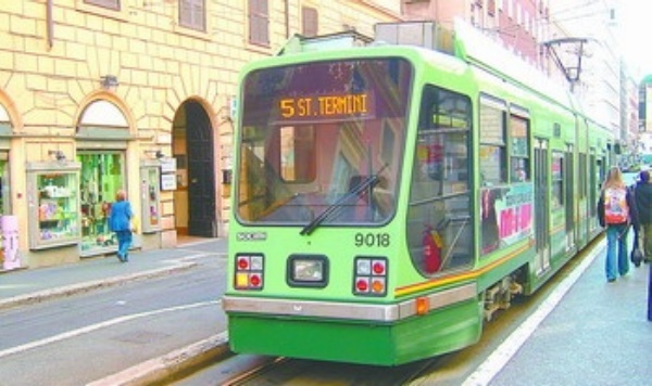 有轨电车是意大利首都罗马市民出行的首选公共交通工具。图为一有轨电车缓缓驶入位于罗马火车站附近的车站。 徐惠喜摄