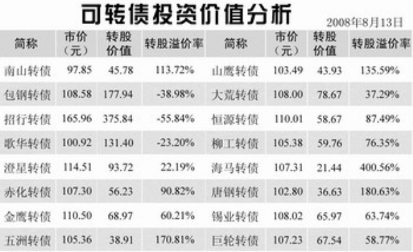 值得注意的是,可转换债券不属于短期品种,特别是对于新发行的可转债至少在半年之后才进入转换期,应当从中长期来把握股价的预期。