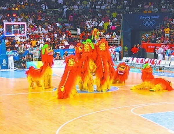 赛场休息时,中国的传统舞狮表演同样吸引了广大观众。本报记者 杨忠阳摄影