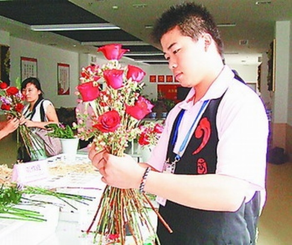“我们制作人员一共有50人,基本上来自花艺专业的职高教师和学生,还有一部分园林系统的职工。”王绥枝介绍说,“花束制作是个技术工种,必须有一定的专业基础。”