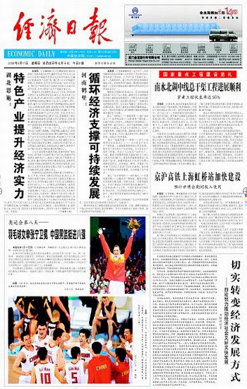 右图 8月16日,在北京奥运会羽毛球女子单打决赛中,中国选手张宁战胜队友谢杏芳获得金牌。
