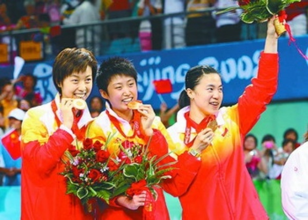 在当晚进行的北京奥运会乒乓球女团决赛中,中国队以3:0战胜新加坡队,中国选手夺得奥运会历史上首枚乒乓球女子团体金牌。