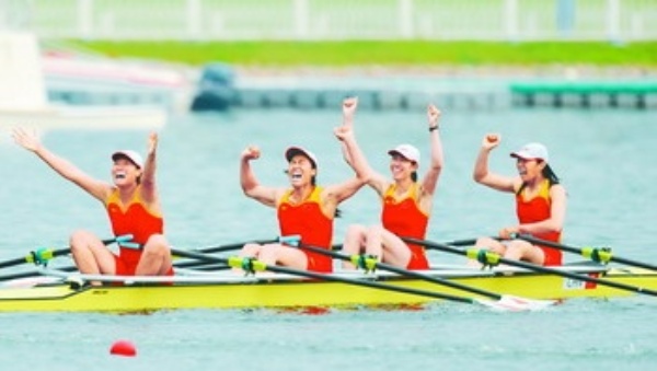 赛艇项目是当日又一夺金亮点。在女子四人双桨决赛中,唐宾、金紫薇、奚爱华和张杨杨夺取了中国的第一枚奥运会赛艇金牌。