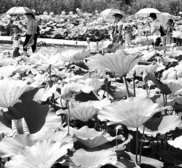 8月2日,河北保定白洋淀文化苑景区游人如织,668种天下名荷供游客观赏。 本报记者 李景录摄