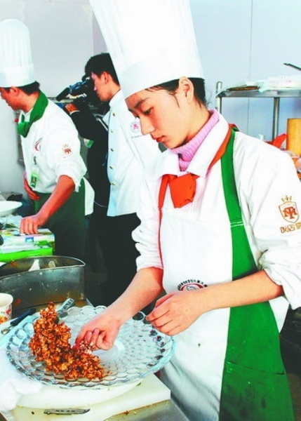 和北京奥运会结缘,是在去年的首届全国高等学校烹饪技能大赛上,那时我是武汉商业服务学院参赛代表中惟一的女选手。凭借“盛世团圆”这个糕点,我为团队拿到冠军做出了重要贡献,也取得了北京奥运餐厅的入场券,这是我一生的荣耀。