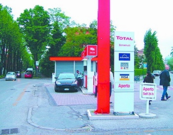 意大利的许多加油站都设计得非常小巧玲珑,但却能满足开车者的加油刷卡等基本需求。图为位于威尼斯的一加油站外景。 徐惠喜摄