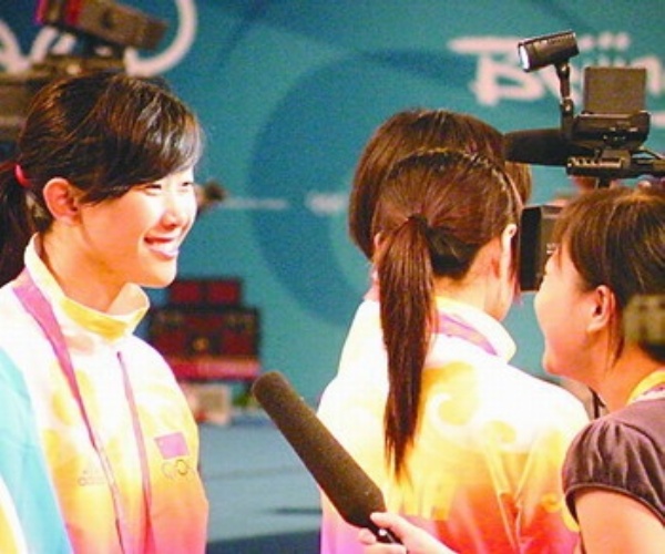 女子佩剑团体决赛,虽然以一剑之差惜败,因为拼尽了全力,谭雪依然以灿烂的笑容面对新闻媒体。