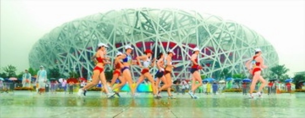 | 右图 8月21日,北京奥运会女子20公里竞走比赛中在雨中开赛,俄罗斯选手奥莉加·卡尼斯金娜夺得这个项目的金牌。 新华社记者 陈晓伟摄 |