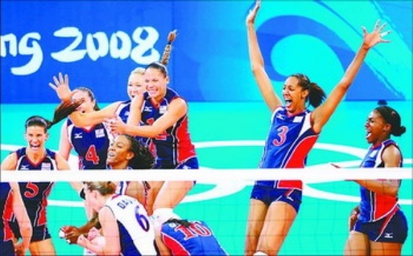 | 8月21日,在北京奥运会女排半决赛中,美国队以3比0战胜古巴队,挺进决赛。