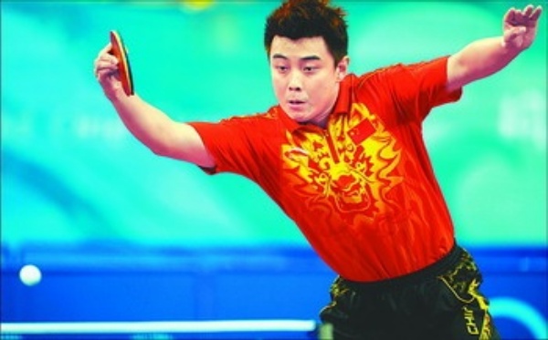 | 8月21日,中国选手王皓在北京奥运会乒乓球男单第三轮比赛中,顺利晋级。