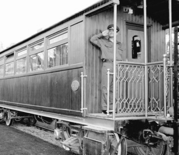 汉志铁路起自大马士革,终点至麦地那,总长约1300公里。1908年8月20日,列车首次出发。图为在约旦举行的汉志铁路通车一百周年纪念日上,列车员站在老火车车厢上接受检阅。 新华社发