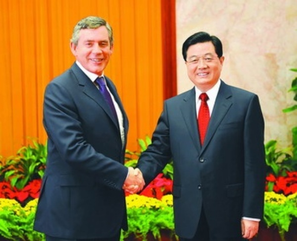 布朗赞同胡锦涛对中英关系的看法和主张。他表示,英中战略伙伴关系正在不断推进,双边贸易增长迅速,文化、教育、人员交流活跃。英方希望同中方加强科学技术、应对气候变化、核能和可再生能源利用、帮助非洲国家实现联合国千年发展目标等方面的合作,开展文化、人员交流、人权领域交流对话。英方愿意同中方共同打击贸易保护主义,推进世界贸易谈判,推动建立开放稳定的全球贸易体系,推动国际机制改革进程。
