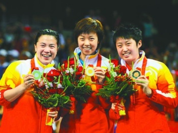 在当日举行的乒乓球女子单打比赛中,中国队获女单前三名,张怡宁当晚战胜队友王楠夺冠,小将郭跃获铜牌。