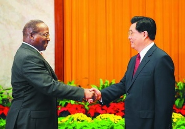8月22日,国家主席胡锦涛在人民大会堂会见前来出席北京奥运会闭幕式及相关活动的多米尼克总统利物浦。 新华社记者 刘建生摄