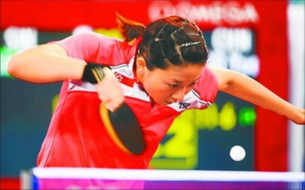 | 8月22日,中国选手郭跃和新加坡选手李佳薇争夺北京奥运会乒乓球女子单打铜牌,最终郭跃取胜。图为选手李佳薇在比赛中。