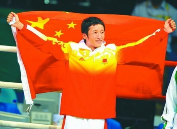 8月24日,中国选手邹市明在北京奥运会拳击男子48公斤级决赛中获得冠军。 本报记者 李景录摄