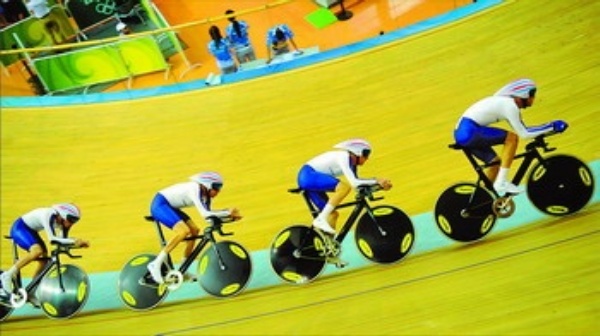 8月18日,北京奥运会场地自行车男子4公里团体追逐赛决赛在北京老山自行车馆举行。 新华社记者 张 铎摄