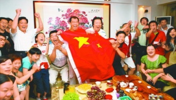 | 8月17日,福建上杭县,中国羽毛球选手林丹的家人及亲朋好友在电视机前为夺得金牌的林丹喝彩,同时也为各国运动员鼓劲。北京奥运会期间,全中国数以亿计的观众热情关注着奥运赛场,与来自世界各地的运动员一道,共同享受同一个世界,同一个梦想的喜悦。 |