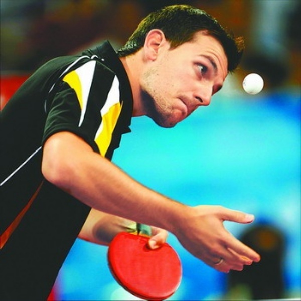 | 8月18日,德国选手波尔在北京奥运会乒乓球男子团体决赛中。
