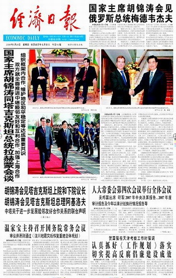 胡锦涛会见塔吉克斯坦上院和下院议长胡锦涛会见塔吉克斯坦总理阿基洛夫