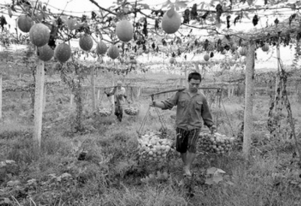 8月27日,江西分宜县杨桥镇潭湘村村民在500亩吊瓜基地采摘吊瓜。近年来,该县大力发展特色农业,上半年该县农民人均现金收入达2317元。 张文耀摄 (中经网供图)
