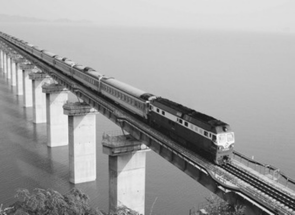 9月2日,一列客运列车从铜九铁路鄱阳湖铁路特大桥上驶过。9月1日,铜九铁路(铜陵—九江)正式开行客运列车。国家重点工程铜九铁路全长251公里,今年3月建成,7月1日先期开通了货车运营。 胡国林摄(新华社发)
