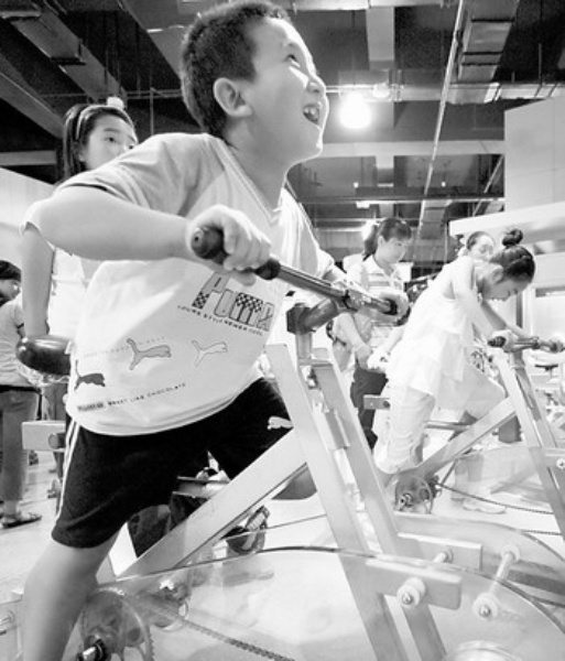 暑假期间,冰城哈尔滨市的许多家长带着孩子来到黑龙江省科技馆里参观、游玩,让孩子们过一个快乐、充实的假期。图为一位小朋友在科技馆里玩体验游戏。 新华社记者 王建威摄