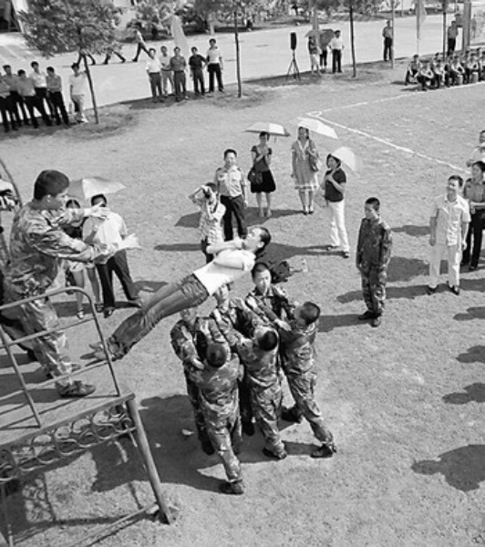 日前,第二炮兵某部组织驻地市政府机关工作人员到部队过国防日。图为驻地市政府工作人员体验官兵心理训练的镜头。 张铁汉摄