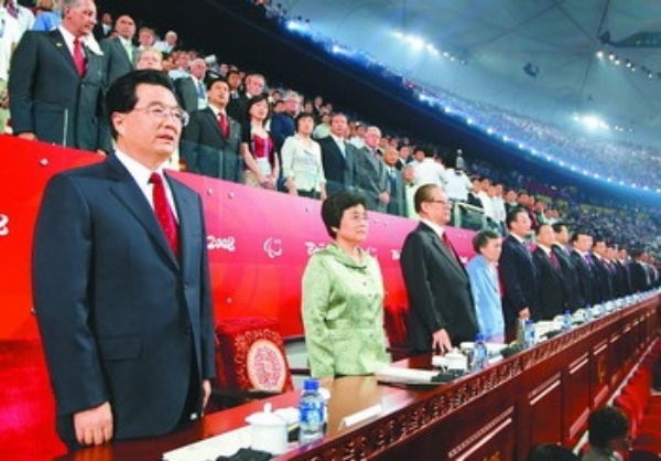 党和国家领导人江泽民、吴邦国、温家宝、贾庆林、李长春、习近平、李克强、贺国强、周永康等,国际残奥委会主席克雷文,国际奥委会终身名誉主席萨马兰奇,以及来自世界各地的贵宾出席开幕式。