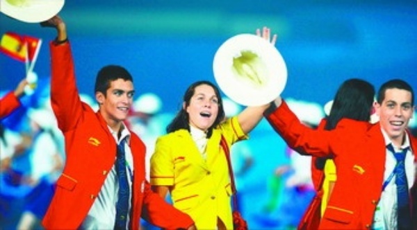 上图 9月6日,北京2008年残奥会开幕式上,西班牙代表团在入场。 新华社记者 蔺以光摄