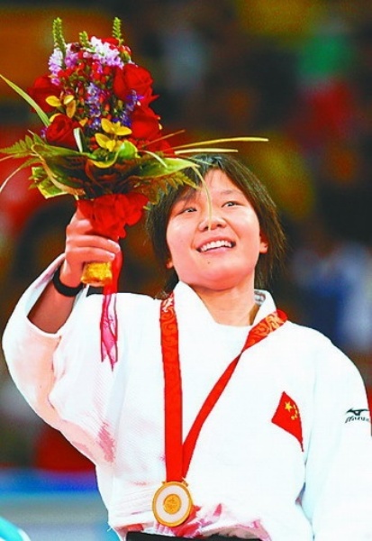 上图 9月7日,中国选手崔娜在颁奖仪式上。崔娜在北京残奥会女子柔道52公斤级决赛中获得冠军。新华社记者 廖宇杰摄