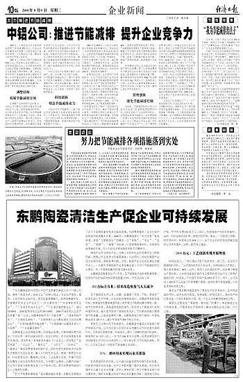 中铝公司:推进节能减排 提升企业竞争力