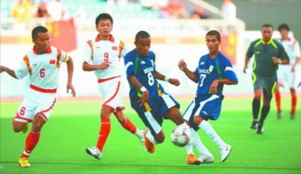 | 9月10日,北京2008年残奥会七人制足球男子A组的最后一场预赛中,中国队与巴西队的比赛正在紧张进行,运动员们的表现赢得全场观众的热烈掌声。